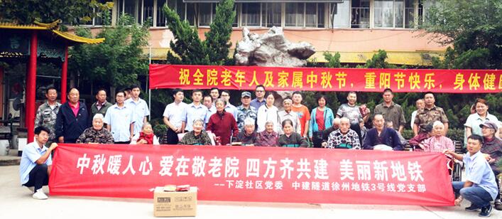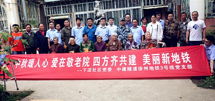 9月22日上午,下淀社區(qū)黨委、中建隧道徐州地鐵3號線黨支部開展了“中秋暖人心愛在敬老院,四方齊共建美麗新地鐵”區(qū)域黨建共建活動。