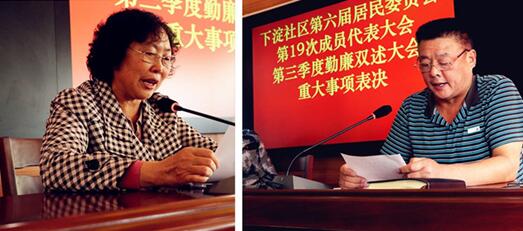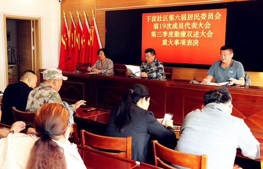 10月12日下午,下淀社區(qū)第六屆居民委員會第19次成員代表大會、第三季度勤廉雙述大會、重大事項表決會議在下淀社區(qū)四樓會議室舉行。60名成員代表就2018年重陽節(jié)組織老年人活動進行了表決。