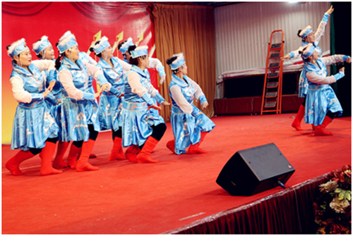 雙方領(lǐng)導(dǎo)致新年賀詞,對社區(qū)2018年度32名“好媳婦、好婆婆、好妯娌”及31名社區(qū)星級文明戶進行了表彰。隨后,文藝演出豐富多彩。有傘舞《雨意江南》、蒙古舞《馬背上的思念》、葫蘆絲演奏《微山湖》、豫劇表演唱《抬花轎》等節(jié)目。