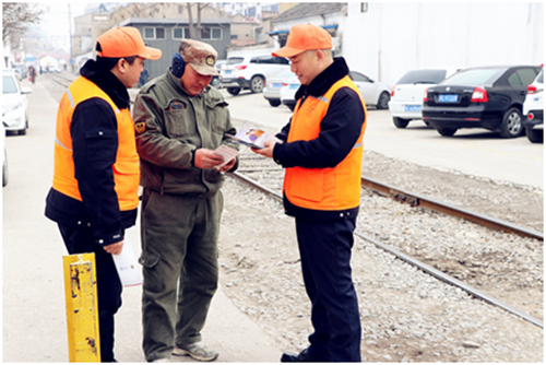 2019年1月18日上午,下淀社區(qū)護路聯(lián)防隊正常巡邏在所屬轄區(qū)內(nèi)的鐵路專用線上。他們向過往行人散發(fā)鐵路安全知識宣傳資料,深受居民支持。多年來,社區(qū)未發(fā)生一起涉鐵重大刑事案件,未發(fā)生重大路外傷亡事故,轄區(qū)鐵路沿線秩序井然,為轄區(qū)社會政治穩(wěn)定、經(jīng)濟發(fā)展做出了努力和貢獻。