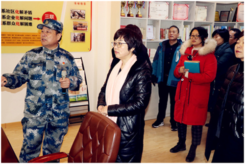 213 上午,經(jīng)濟(jì)開發(fā)區(qū)金山橋街道辦事處全體領(lǐng)導(dǎo)班子、中層干部、社區(qū)主任30余人,在豐財(cái)街道辦事處黨工委書記蔡先法、主任劉敏浩、副主任孫建新、劉擁軍、邱懷傳等陪同下,來下淀社區(qū)參觀?腿藗兿群髤⒂^了一站式大廳、下淀記憶館、付化友黨建工作室和和遠(yuǎn)程教育等文化建設(shè)設(shè)施。社區(qū)黨委書記付化友自始至終親自為客人講解。