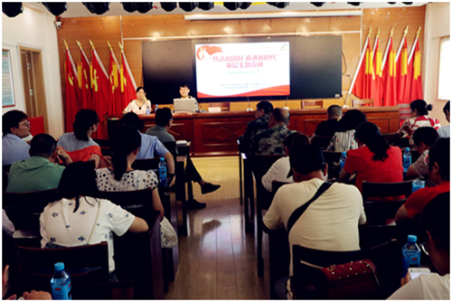 7月30日下午,“共話祖國好 奮進新時代”主題宣講活動在下淀社區(qū)召開。豐財街道辦事處副主任蔡乃蓉現場主持,由徐州市委黨;A理論教研室主任、鄭歷蘭副教授主講。各社區(qū)領導、基層黨員和下淀社區(qū)工作人員共80余人參加活動。