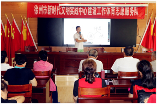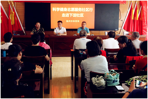 8月13日上午,徐州市新時代文明實踐中心建設工作體育志愿服務隊“科學健身志愿服務社區(qū)行”走進下淀社區(qū),70多名中老年朋友接受培訓服務;顒佑尚熘菔畜w育局群體處張勇主持、下淀社區(qū)黨委書記付化友對服務隊表示熱烈歡迎。國家健身管理師、培訓導師、徐州市科學健身指導協(xié)會副會長母長青就常見脊椎疾病的運動緩解方法進行詳解并現(xiàn)場指導。