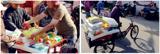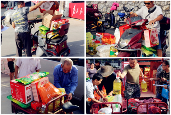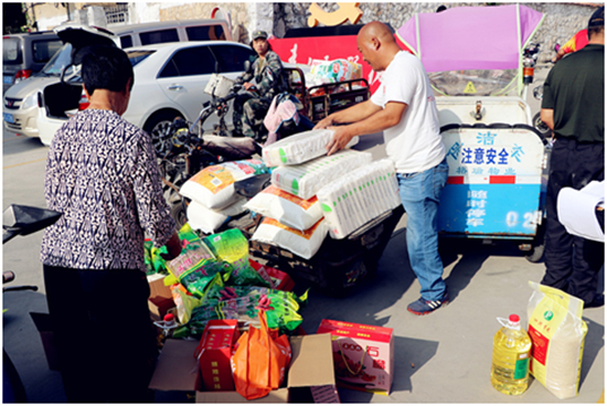 9月10日上午,徐州市下淀社區(qū)已連續(xù)16年為居民送中秋大禮,來自本社區(qū)的1300多戶涉農(nóng)居民喜滋滋地領(lǐng)到了大米、面粉、掛面、食油、月餅、粉絲、調(diào)味品、香油、咸青皮、石榴等十全十美物品,外加一個“奔騰”牌電飯煲,60歲以上涉農(nóng)老年村民還能領(lǐng)到200元的過節(jié)現(xiàn)金。