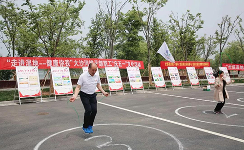 “走進濕地,健康你我”慶“五一”職工文體活動。鎮(zhèn)機關(guān)全體職工、各村各單位青年干部徒步六公里,走進濕地,踴躍參加拔河、 踢毽子、跳繩、兩人三足等趣味比賽,現(xiàn)場笑聲不斷,精彩紛呈。