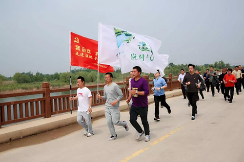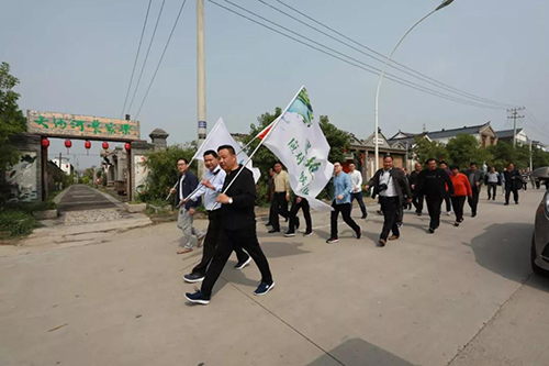 早上9點鐘,鎮(zhèn)機關(guān)全體職工、各村、各單位黨員干部在李衛(wèi)廣場集合,隨著一聲發(fā)令槍響,我們的隊伍出發(fā)啦!