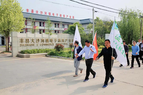 隊伍路過豐縣大沙河鎮(zhèn)電子商務(wù)產(chǎn)業(yè)園