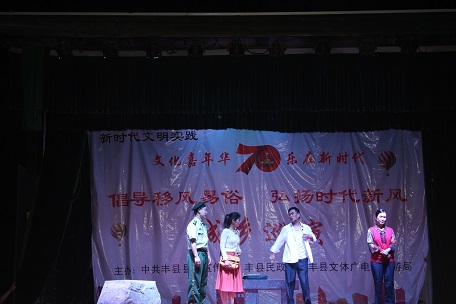 歌曲、舞蹈、戲劇、小品等一個個內(nèi)容新穎、“接地氣”的節(jié)目在舞臺中央上演,贏得場下陣陣喝彩。據(jù)了解,這場文化巡演的主要目的就是為了倡導群眾移風易俗,摒棄農(nóng)村陋習,弘揚時代新風。節(jié)目中展現(xiàn)了當下農(nóng)村真實存在的問題,如天價彩禮的不良風氣、新時代年輕人新思想新追求等,表演者用詼諧幽默的劇情、熟悉的鄉(xiāng)音引得在場的觀眾鼓掌叫好。