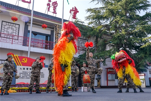 民兵文藝隊(duì)員組織舞獅節(jié)目排練。 徐報(bào)融媒記者 孫博宇 通訊員 朱東潤(rùn) 攝