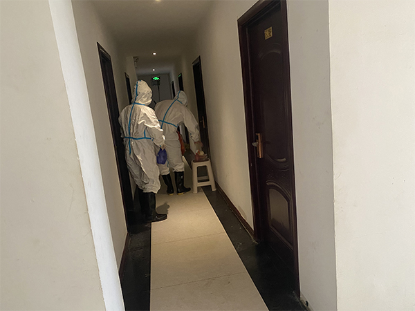 艱難方顯軍人志,為守隔離不退縮。退役軍人志愿者竇月俊、宋太真、鹿耀文等人,每天穿著厚厚的防護(hù)服為集中隔離點(diǎn)的隔離人員分發(fā)一日三餐,收拾餐盒垃圾,還擔(dān)負(fù)著為公共區(qū)域消毒,每天定時(shí)為被隔離人員登記測量體溫的任務(wù)。七、八月份的天氣,每天在隔離點(diǎn)進(jìn)行兩次消殺,一遍下來膠鞋都能控出水。穿上防護(hù)服行動(dòng)非常不方便,而且酒店的溫度更是高,防護(hù)服穿上10分鐘就會(huì)出汗,每天脫下防護(hù)服,里面的衣服都能擰出汗水,護(hù)目鏡里的水汽也常模糊到看不清楚。有時(shí)會(huì)累到?jīng)]有胃口吃飯。但他們依然堅(jiān)守在隔離點(diǎn)的崗位上,因?yàn)樗麄兪擒娙,是志愿者。正?ldquo;八·一”建軍節(jié),祝他們節(jié)日快樂!