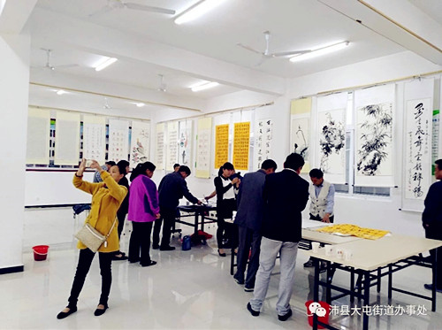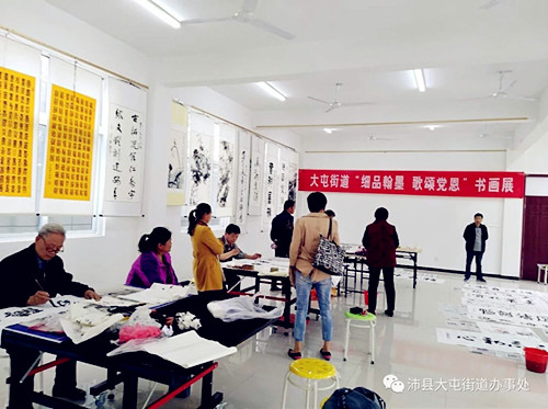 25日上午,大屯文體站好熱鬧,由街道主辦的“細(xì)品翰墨 歌頌黨恩”書畫展在這里舉行。文體站書畫協(xié)會(huì)的8位老師以及書畫愛(ài)好者參加了活動(dòng),現(xiàn)場(chǎng)創(chuàng)作書畫作品60余幅,社區(qū)黨員群眾200余人前來(lái)欣賞書畫作品。