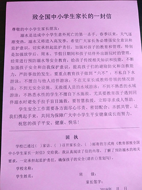 班會上,各班班主任著重強調(diào)了嚴(yán)防溺水的六不教育