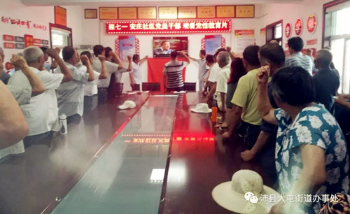 街道村居等48個(gè)黨支部觀看黨性教育片,重溫入黨誓詞。