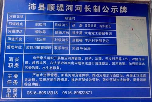 離開馬寺大溝,小編跟隨大屯街道河長辦主任、水利站站長曾慶德來到縣級河道順堤河,河岸邊藍色公示牌上三級河長的姓名和職務清晰明了,牌子的最下面留有24小時值班的監(jiān)督電話。