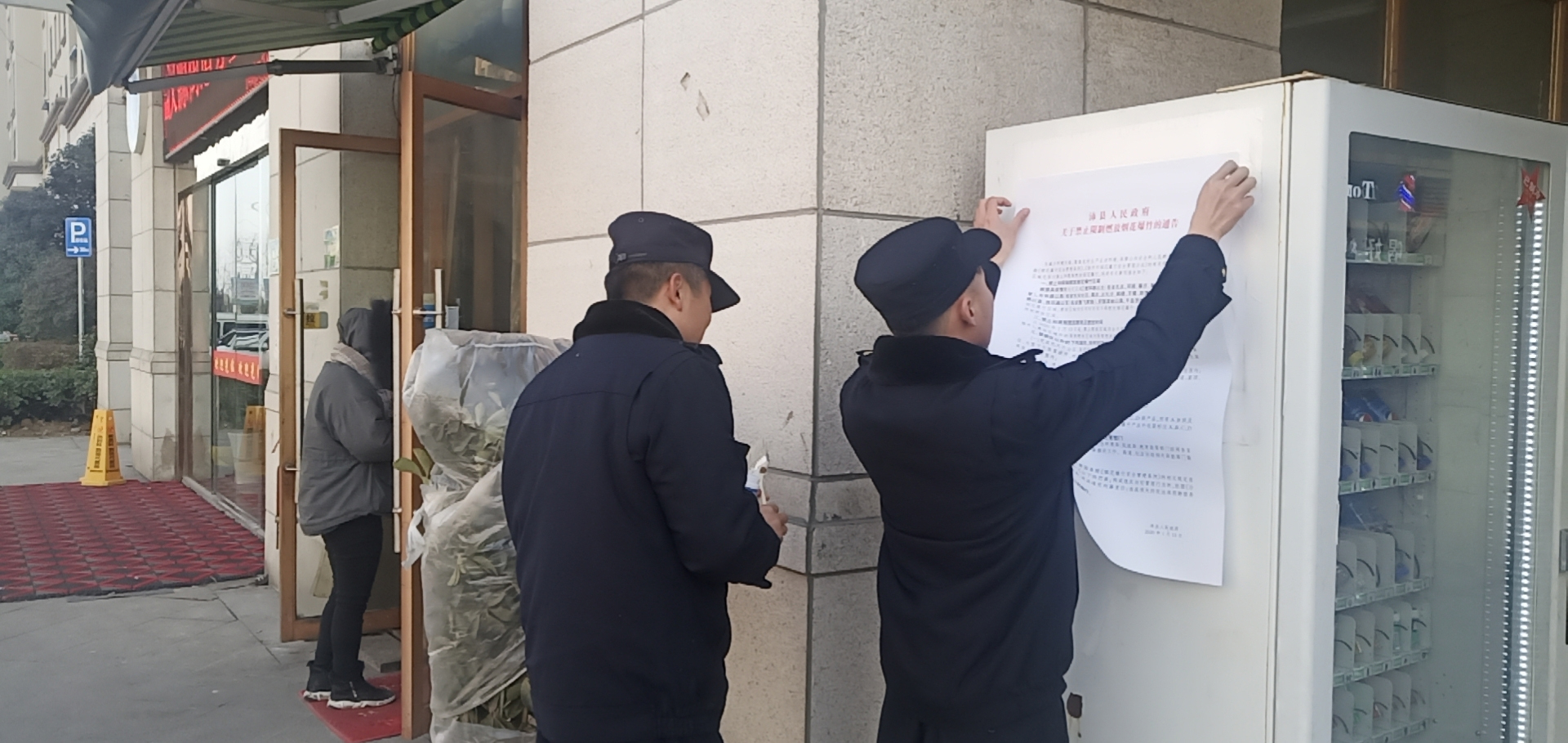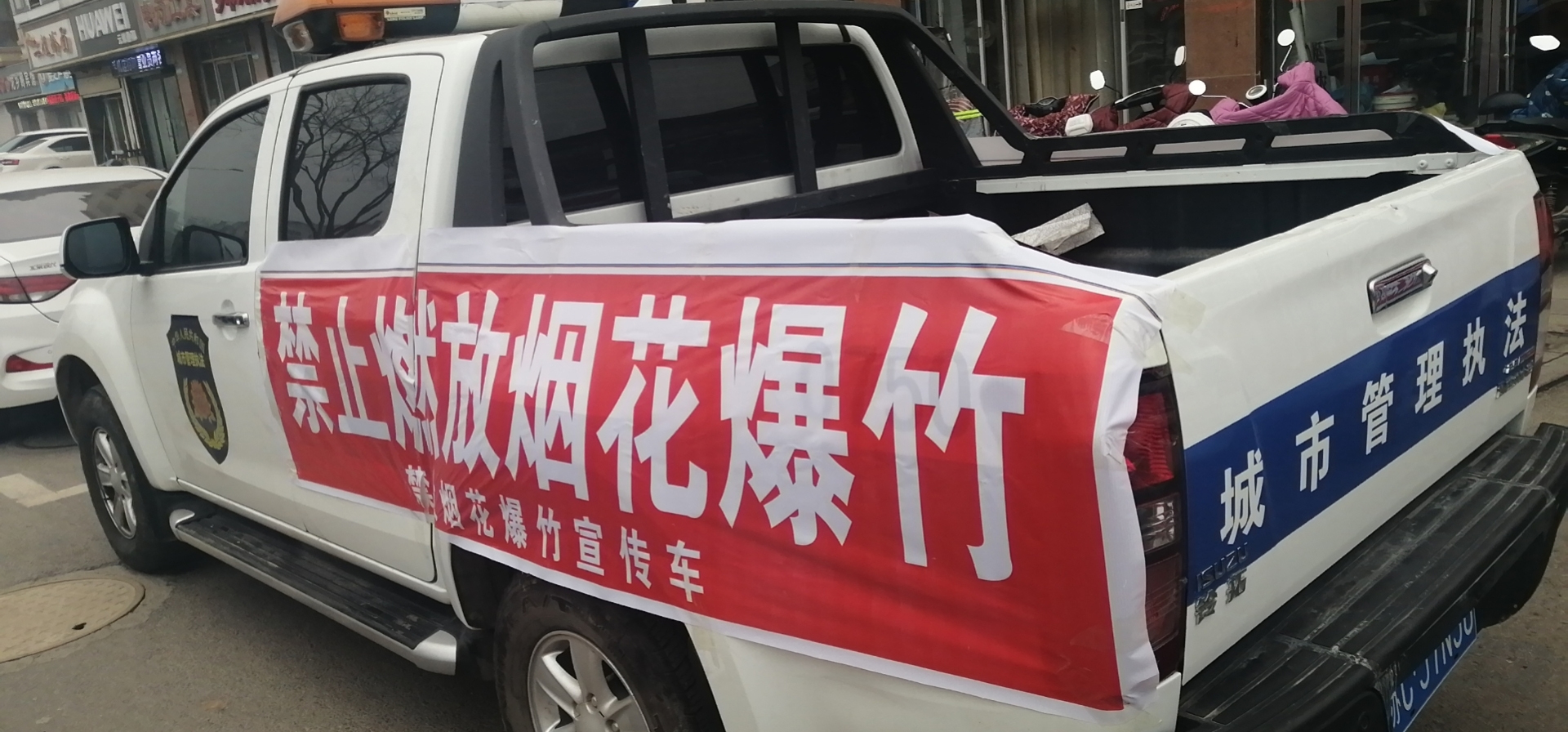 根據(jù)《煙花爆竹安全管理條例》、《徐州市煙花爆竹安全管理辦法》以及沛縣人民政府關(guān)于禁止限制燃放煙花爆竹通告的有關(guān)規(guī)定,綜合執(zhí)法大隊安排3輛宣傳車在城區(qū)循環(huán)播放禁放煙花爆竹的通告;通知688家有LED屏的商戶,循環(huán)滾動禁放煙花爆竹標語;執(zhí)法人員在主城區(qū)明顯位置懸掛禁放標語、張貼禁放通告共計500多份。