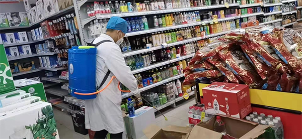 醫(yī)務人員對超市進行消毒