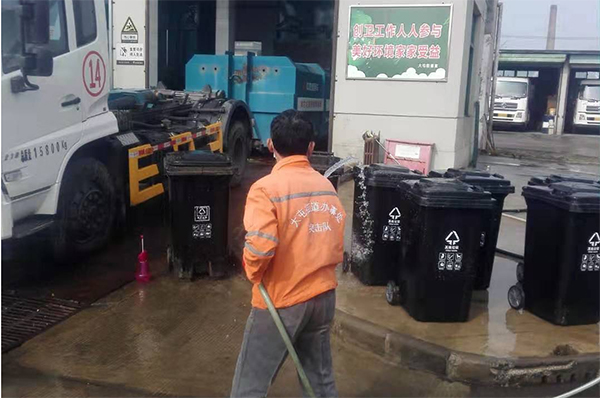 環(huán)衛(wèi)統(tǒng)一對垃圾桶進(jìn)行沖洗、消毒