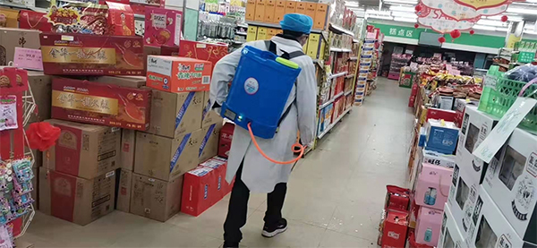 醫(yī)務(wù)人員對超市進(jìn)行消毒