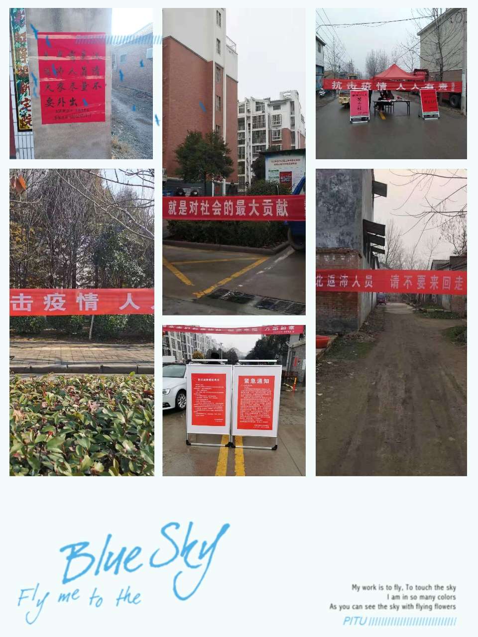 宣傳地區(qū)無死角。街道從面上掌握宣傳的方向內(nèi)容,全面調(diào)度指揮宣傳的工作。各村居社區(qū)進(jìn)村入戶宣傳,在村居小區(qū)的醒目位置能看到各類宣傳橫幅宣傳標(biāo)語。在樓道,特別是在那些居家隔離的人員家門口也都用大紅紙貼上醒目的提示語“我從武漢來,請不要來串門。” 流動(dòng)宣傳車、村居小區(qū)小喇叭不間斷的播出,時(shí)刻都在提醒人們的注意安全。