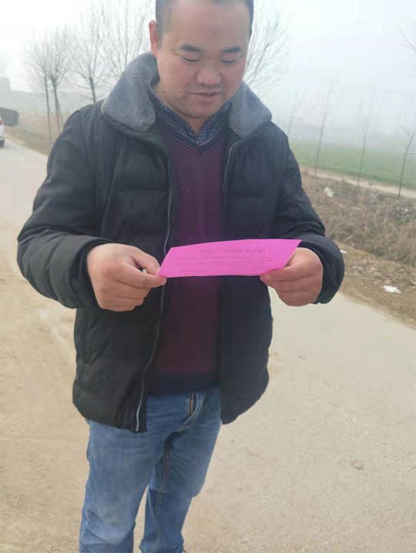 每個村口都有他排兵布陣的身影。大年初一一早,本來應(yīng)該是拜年、放炮、吃餃子的時候,他卻匆匆給父母磕了頭(拜年習(xí)俗)就走向了村頭,調(diào)度村兩委、黨員、優(yōu)秀群眾在村西頭的麥地邊開了“封村”動員會。“要求鹿樓村所有自然村在初一中午前全部封閉到位,每個村只留一個應(yīng)急通道派人把守,其余通道全部予以封閉,一個村干部負(fù)責(zé)一個自然村,村干部負(fù)責(zé)動員本村黨員24小時執(zhí)勤,禁止車輛、人員出入,發(fā)現(xiàn)湖北籍貫車輛、人員立即報告。請立即行動,散會。”這是他站在土堆上開的的最快的、最短的一次會,也是做村支書以來下的最嚴(yán)肅的一道命令。初一上午10時,微信群傳來全村8個自然村全部“封閉”到位的消息。