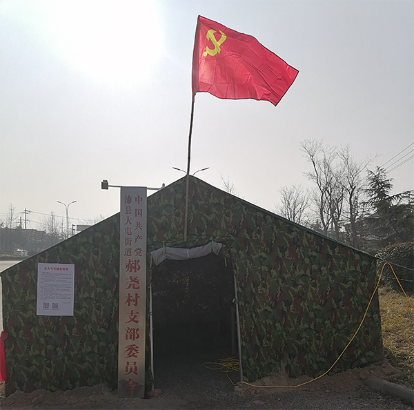 早上七點(diǎn)半,他到入村主路口的防疫監(jiān)測(cè)點(diǎn)執(zhí)勤。一個(gè)告示牌、兩張桌子、幾把椅子、一個(gè)簡(jiǎn)易帳篷、一面黨旗,這是便是郝堯村的疫情防控服務(wù)站,也是防疫臨時(shí)黨支部的前線陣地。面對(duì)嚴(yán)格的防控措施,外來(lái)人員有推搡,有不解,有埋怨,一開(kāi)始甚至與值班人員發(fā)生口角,他都耐心做好解釋、陳情利害關(guān)系,動(dòng)之以情曉之以理,勸返走親訪友的外來(lái)人員。