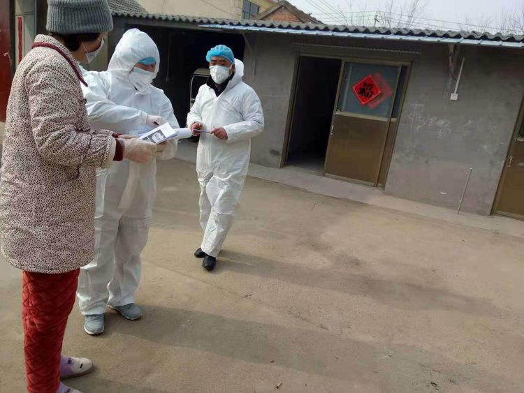 志愿者到村民家中發(fā)放《給全鎮(zhèn)人民的一封信》,并講解疫情防控措施,醫(yī)療護理措施。