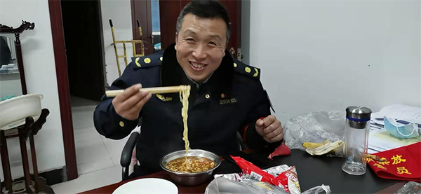 連日來,五大隊執(zhí)法人員沖鋒在防疫第一線,廢寢忘食,加班加點,餓了吃碗泡面、渴了喝口礦泉水、冷了狠狠地跺跺腳,再苦再難,無所畏懼,逆流而上。一張笑臉,是抗“疫”一線城管人的最佳名片。無怨無悔地堅持在一線聯(lián)防執(zhí)勤線上,樂觀豁達面對工作,毫不退縮的堅守在防護第一線,他們的身影最溫暖,是廣大群眾最可靠的“貼心人”,他們步伐堅實,是廣大群眾最可信的“主心骨”,越是艱險越向前,用執(zhí)著構(gòu)筑護佑百姓的安全屏障。