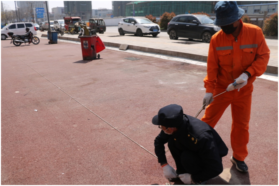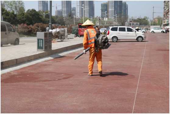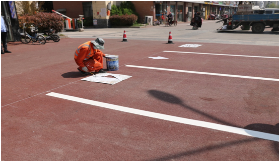 為確保施劃泊位清晰、經(jīng)久耐用,根據(jù)道路實際情況,人行道空間大小、停車需求量、進出便利等特點科學地規(guī)范施劃停車位。在現(xiàn)場,工作人員正在認真施劃泊車位。一名工作人員先清掃路面,然后由兩名工作人員進行拉線,同時另一名工作人員背著鼓風機對劃線部位進行除塵,最后根據(jù)不同路面狀況由一名工作人員推著裝滿白色涂料的劃線車按照“熱熔”或“冷噴”方式進行施劃停車泊位。