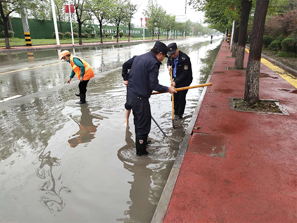 積極清淤:全面開展雨后清淤、路面沖洗工作,確保轄區(qū)路面排水暢通、路面整治,及時(shí)恢復(fù)干凈、整潔、優(yōu)美的城市環(huán)境。