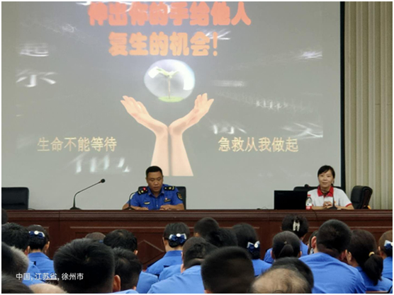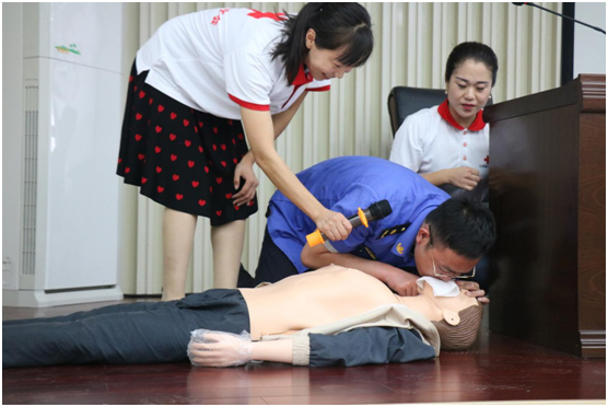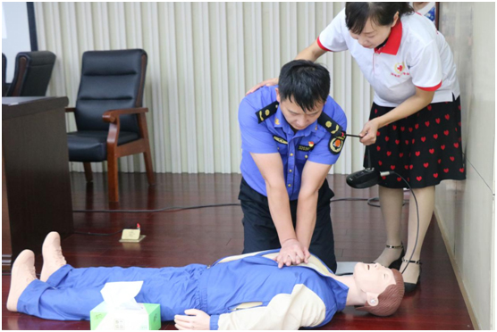在講解中,紅十字會工作人員利用醫(yī)用模特現(xiàn)場演示了心臟復蘇救助的全過程,對胸外心臟按壓法進行了詳細的講解與示范。期間,沛縣城市管理局兩名執(zhí)法人員同時上臺切身體驗,更加具體地了解應急救援的基本技巧和注意事項。通過理論與實際操練相結(jié)合,使大家了解了急救的基本要領(lǐng),令人記憶深刻。