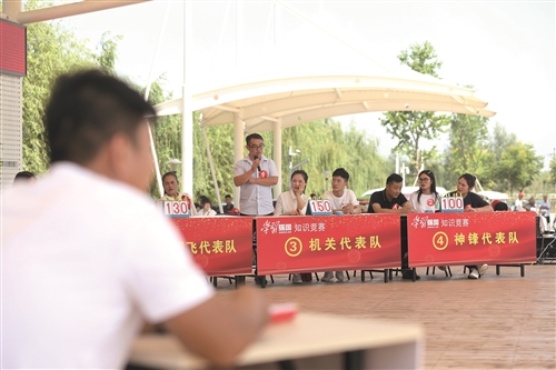 “五星紅旗迎風(fēng)飄揚(yáng),勝利歌聲多么響亮。歌唱我們親愛的祖國(guó),從今走向繁榮富強(qiáng)……”上午11時(shí),“學(xué)習(xí)強(qiáng)國(guó)”進(jìn)基層大型活動(dòng)正式啟動(dòng),大沙河公園百姓大舞臺(tái)全體人員起立高唱《歌唱祖國(guó)》。啟動(dòng)儀式過后,精彩的知識(shí)競(jìng)賽拉開序幕。
