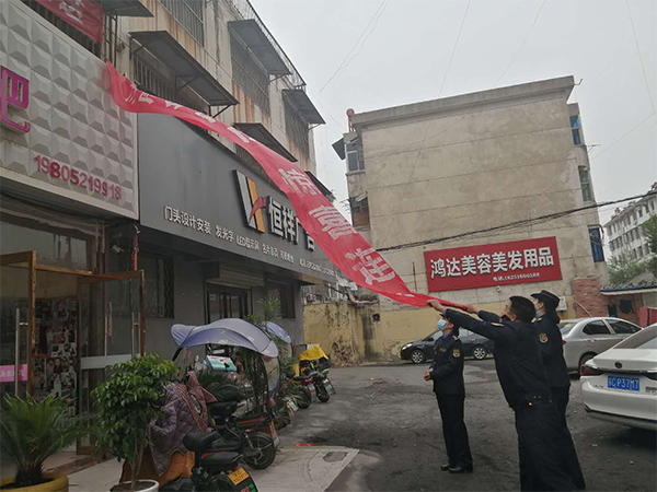 二大隊執(zhí)法人員節(jié)后對轄區(qū)內(nèi)市容市貌環(huán)境加強(qiáng)管控,以新莊路、香港街為中心的各條道路的違規(guī)橫幅廣告進(jìn)行集中清理,及時發(fā)現(xiàn)現(xiàn)場清除亂懸掛10余處。在東風(fēng)路,由于道路正在升級改造搭建了腳手架,很多店家就將廣告牌掛在了腳手架上,執(zhí)法人員對私設(shè)的廣告牌進(jìn)行了清理。對于懸掛在店家門口的橫幅廣告,執(zhí)法人員協(xié)助店主拆除,并告知不得隨意擅自懸掛,同時對店外促銷商家進(jìn)行相關(guān)法律法規(guī)的宣傳教育,積極引導(dǎo)店主從身邊做起、從自己做起,切實(shí)履行好“門前三包”義務(wù),不占用人行道路,維護(hù)好城市道路整潔和市容環(huán)境秩序。