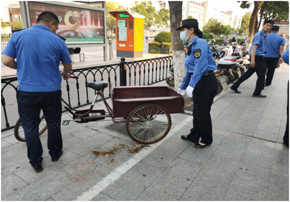 此次志愿者服務(wù)的主要任務(wù)是堅持目標和問題導向,強化過程管理,通過開展環(huán)境衛(wèi)生清理行動中,提升黨員干部素質(zhì)、探索文明城市創(chuàng)建工作的新途徑和新方法,推動文明城市創(chuàng)建工作向縱深發(fā)展;顒蝇F(xiàn)場,城管志愿者沿著街道,清理人行道、綠化帶內(nèi)、路沿、墻角等處的煙頭及垃圾。對無序停放的非機動車進行了順導,從點滴細小處入手,為廣大居民營造一個良好的市容環(huán)境。