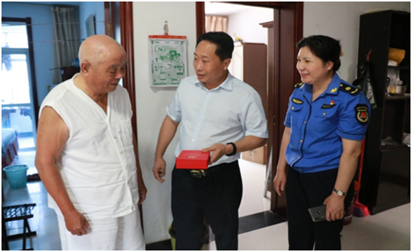 在老黨員家中,局領導班子成員與老黨員親切交流,關切詢問他們的生活和身體健康狀況,與他們一起重溫奮斗歷史,共同回顧黨的百年光輝歷程,展望城管執(zhí)法發(fā)展的美好前景。局長張冠軍表示,在建黨100周年之際,黨中央決定為黨齡50年以上的黨員頒授紀念章,在我們黨的歷史上是第一次,這充分體現(xiàn)了以習近平同志為核心的黨中央對老黨員的關心、關懷和褒揚,必將進一步增強共產(chǎn)黨員的榮譽感、歸屬感、使命感,激勵廣大黨員拼搏奮斗、砥礪前行,匯聚起全面建設社會主義現(xiàn)代化國家的磅礴力量。