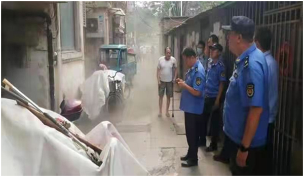 7月1日下午3時(shí)30分,沛縣城管局老城區(qū)執(zhí)法大隊(duì)二中隊(duì)巡查至漢源大道路段電信局附近時(shí),城管隊(duì)員消防兵出身的褚建突然間好像聞到一股刺鼻的煙味,同時(shí)看到電信局北側(cè)巷口方向有陣陣黑煙飄起,也許出于職業(yè)的敏感性,告知隊(duì)長(zhǎng)徐建后,在隊(duì)長(zhǎng)徐建帶領(lǐng)下,所有隊(duì)員立刻奔赴事故現(xiàn)場(chǎng)。