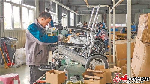徐州恒倍舒醫(yī)療科技有限公司工人在組裝輪椅。