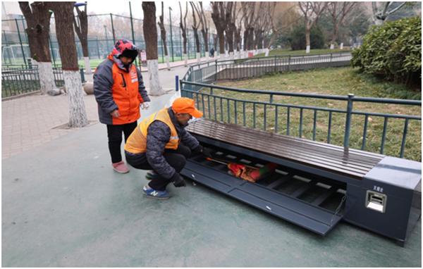 “安裝的這個多功能工具箱真的很便民,不僅能為環(huán)衛(wèi)工人提供工具存放的地方,也給我們提供了歇腳的地方。”幾位在好人廣場鍛煉的老人評論說。