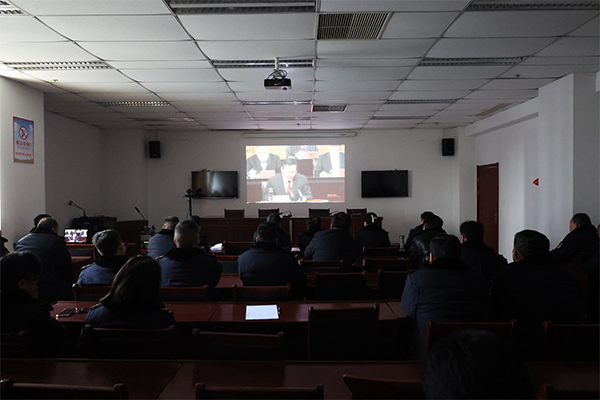 局班子成員及中層以上干部收聽收看全縣三級干部大會現(xiàn)場直播
