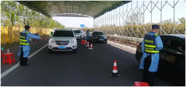 沛縣城管局執(zhí)法人員在高速路口執(zhí)勤