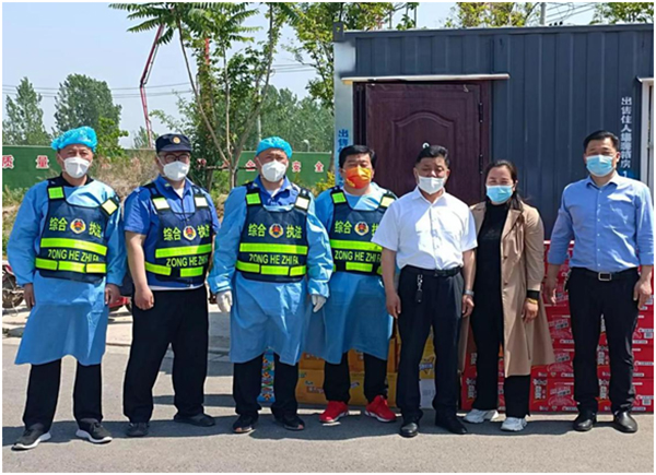 黃淮網(wǎng)(趙樂新) 當(dāng)前疫情防控形勢十分嚴(yán)峻,重要場所防控刻不容緩。高速路口歷來是疫情防控的重要關(guān)口,做好高速路口值守是“外防輸入”的關(guān)鍵環(huán)節(jié)。沛縣城管局選派城管執(zhí)法隊員,在高速路口交通查驗點排兵布陣,全力做好疫情防控的“前哨兵”?禎嵖萍技瘓F(tuán)有限公司心系防控一線工作者,5月3日,組織公司愛心慰問團(tuán)到高速路口查驗點慰問城管局執(zhí)法管理人員,送去防疫物品和公司的感謝與敬意。