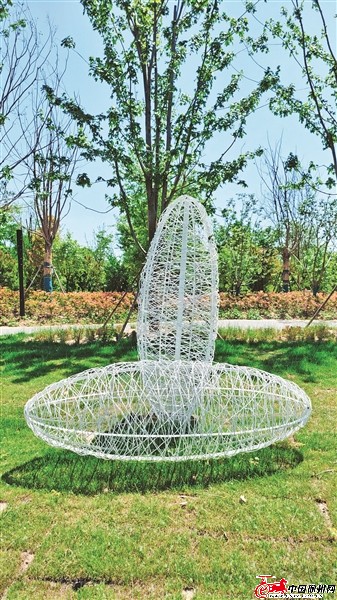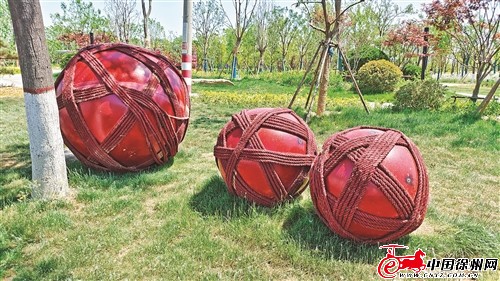 東風西路兩旁彰顯沛縣經(jīng)濟開發(fā)區(qū)紡織產(chǎn)業(yè)特色的雕像。