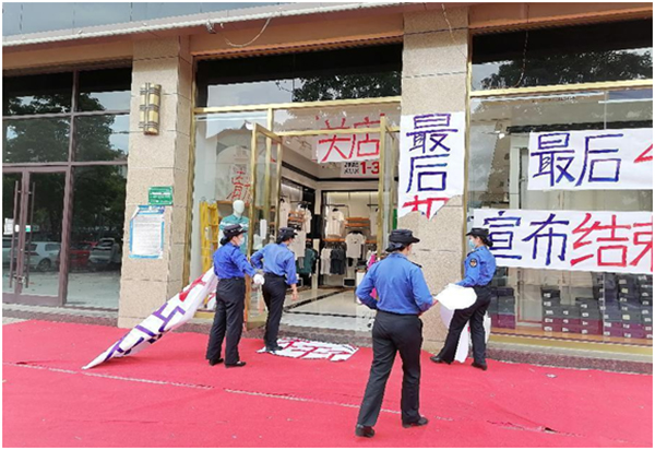 執(zhí)法人員清除店鋪違規(guī)廣告