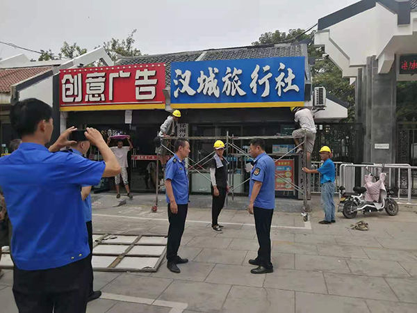 沛縣城管局老城區(qū)執(zhí)法大隊精心謀劃,精準施策,通過專項清理整治和工程改造相結(jié)合的方式,按照“一鋪一案”規(guī)劃臨街商鋪的牌匾背板底色、字體樣式和安裝位置,穩(wěn)步推進漢城公園立面改造工程,徹底改變臨街商鋪門頭牌匾參差不齊、牌匾內(nèi)容雜亂無序等亂象,優(yōu)化城區(qū)環(huán)境,建造具有沛縣地標性商業(yè)街道,推進城區(qū)門頭牌匾檔次和街區(qū)環(huán)境的不斷提升,讓店家小招牌撐起文明大門面,營造干凈、整潔、文明、有序的市容環(huán)境,賦能漢城公園景區(qū)4A級創(chuàng)建,助力國家文明城市創(chuàng)建,扮靚優(yōu)美宜居沛城。