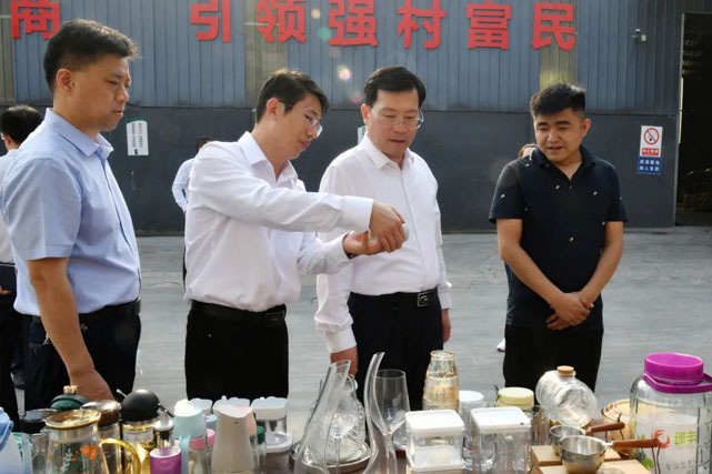 農(nóng)村電商大有可為。在徐州寶冠軒玻璃制品有限公司,丁廣州深入玻璃制品加工車(chē)間和電商銷(xiāo)售辦公室,了解了電商發(fā)展與每月網(wǎng)上成交額等情況,希望五段鎮(zhèn)抓住有利時(shí)機(jī),大力發(fā)展農(nóng)村電商,帶動(dòng)更多農(nóng)民增收致富。
