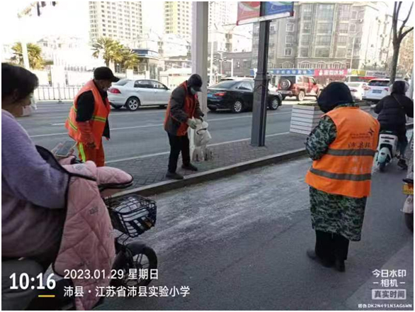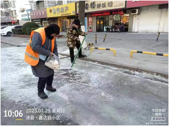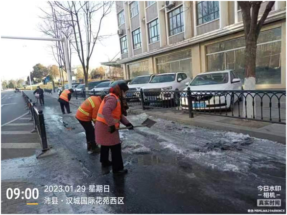 面對這場突如其來的霜凍,沛縣城管局環(huán)衛(wèi)所第一時(shí)間啟動了道路除雪工作預(yù)案,為保證道路結(jié)冰清掃順利,環(huán)衛(wèi)所采用人工拋撒融雪劑作業(yè)模式,對結(jié)冰無法徹底清除干凈的道路,環(huán)衛(wèi)職工依靠雙手、鐵锨、斧頭、掃帚等工具進(jìn)行除冰,確保轄區(qū)道路安全暢通、無結(jié)冰。