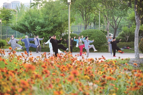 市民在桃花島公園內(nèi)鍛煉。  徐報(bào)融媒記者 孫井賢 攝