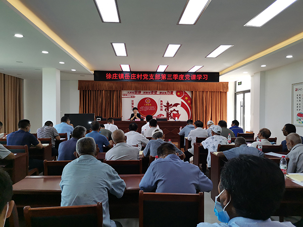 徐莊鎮(zhèn)黨委副書記、鎮(zhèn)長王傳萍為岳莊村黨支部黨員上黨課