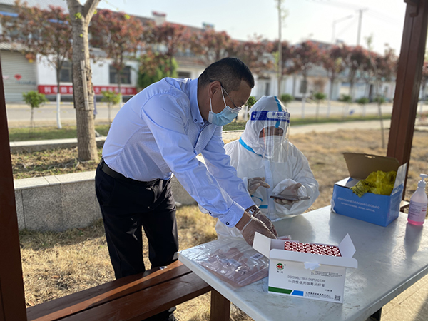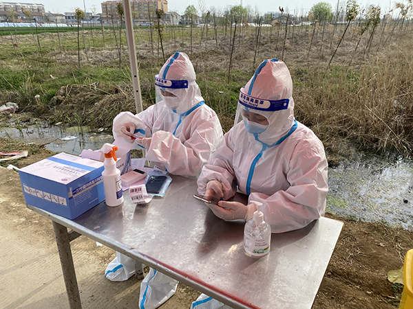 “請大家注意間隔距離、帶好口罩,準(zhǔn)備好身份證!”在馬湖村崗集廣場采樣點,正在維持秩序的是毛莊村村委委員王永。王永,1999年11月加入中國共產(chǎn)黨,現(xiàn)任毛莊村村委委員、治保主任。疫情防控以來,他一直堅守在工作崗位上,認(rèn)真做好外省市返徐人員排查、居家隔離人員管控、入戶“敲門行動”等工作,以實際行動踐行“不忘初心、牢記使命”的責(zé)任擔(dān)當(dāng)。“你好,請出示身份證,錄入信息......”身穿防護服正在采集信息的是王永的妻子徐敏。2021年12月,徐敏當(dāng)選為徐莊鎮(zhèn)馬湖村的人大代表,她深知作為一名鎮(zhèn)級人大代表的責(zé)任與使命。在此次核酸檢測任務(wù)中,徐敏作為一名采樣輔助人員主要負(fù)責(zé)信息錄入與核對。“王永作為一名村干部,疫情面前沖鋒在前是他最基本的責(zé)任與義務(wù),作為他的妻子同時作為一名鎮(zhèn)級的人大代表,我當(dāng)然也不能退縮,為了守護群眾的利益必須加入這場戰(zhàn)‘疫’。”徐敏堅定的說道。對王永和徐敏夫妻來說,愛已經(jīng)不僅是“執(zhí)子之手,與子偕老”,更多的是舍小家為大家的奉獻與堅守。在這場沒有硝煙的戰(zhàn)役中,他們并肩作戰(zhàn),一路前行,為群眾筑建起一道堅實的守衛(wèi)屏障。