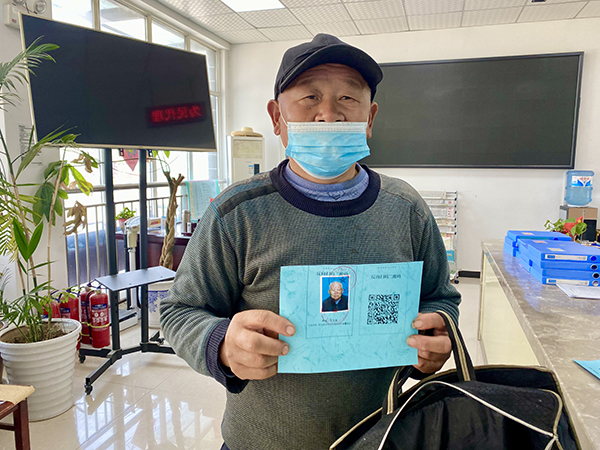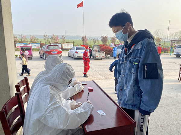 青年志愿者張蕊為村民發(fā)放核酸證明