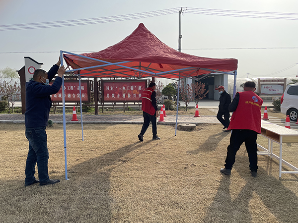 疾風(fēng)知?jiǎng)挪,危難見(jiàn)堅(jiān)貞。作為徐莊鎮(zhèn)重點(diǎn)打造的現(xiàn)代農(nóng)業(yè)產(chǎn)業(yè)基地,千菇園充分發(fā)揮黨支部戰(zhàn)斗堡壘作用和黨員先鋒模范作用,在這場(chǎng)突如其來(lái)的疫情面前,更是不畏險(xiǎn)情,一馬當(dāng)先。結(jié)合來(lái)安村黨總支實(shí)際需求,全面配合落實(shí)各項(xiàng)防控工作任務(wù):一是決定將千菇園3000平米的黨建文化廣場(chǎng)作為來(lái)安村核酸檢測(cè)的場(chǎng)地,二是發(fā)揮黨員先鋒作用,亮黨員身份,扎實(shí)開(kāi)展志愿防疫工作。支部黨員不走過(guò)場(chǎng)、沉在一線,認(rèn)真負(fù)責(zé)做好宣傳動(dòng)員、卡口值守、排查登記、信息采集等工作。黨員王偉說(shuō):作為一名黨員,無(wú)論何時(shí)何地,只要組織需要,我們都會(huì)踐初心、擔(dān)使命,為維護(hù)群眾生命健康安全,貢獻(xiàn)先鋒力量!